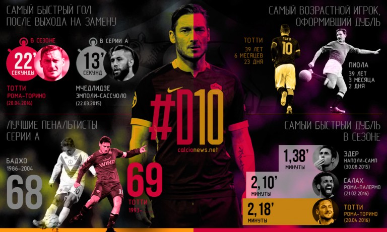 Тотти продолжает писать свою историю в "Роме" и во всем итальянском футболе.