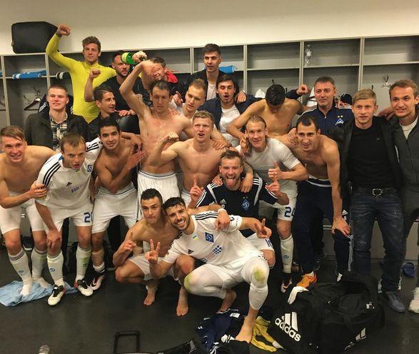 Вингер киевского "Динамо" Андрей Ярмоленко в своем Instagram выложил фото празднования чемпионства команды в раздевалке после победы над "Ворсклой".