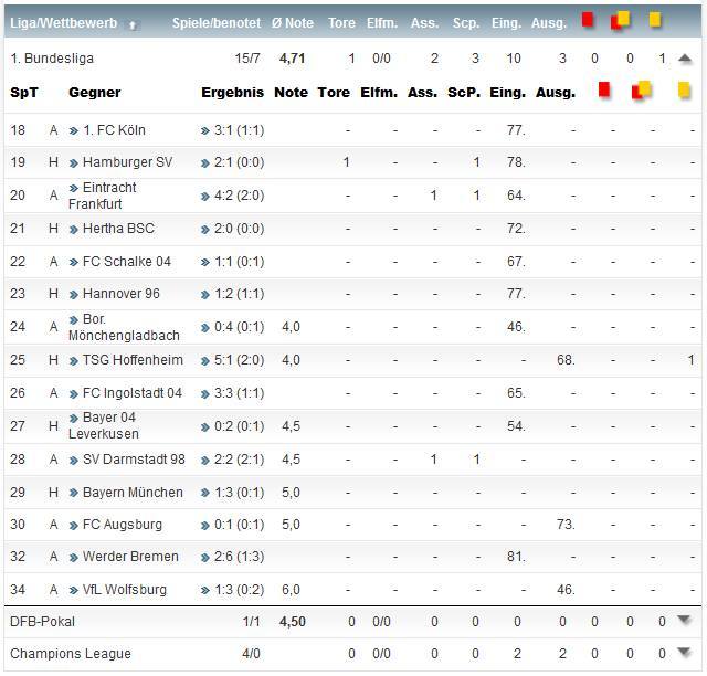 Таким образом, средняя оценка Кравца от Kicker за матчи во всех турнирах составляет 4,68 (в Бундеслиге - 4,71).
