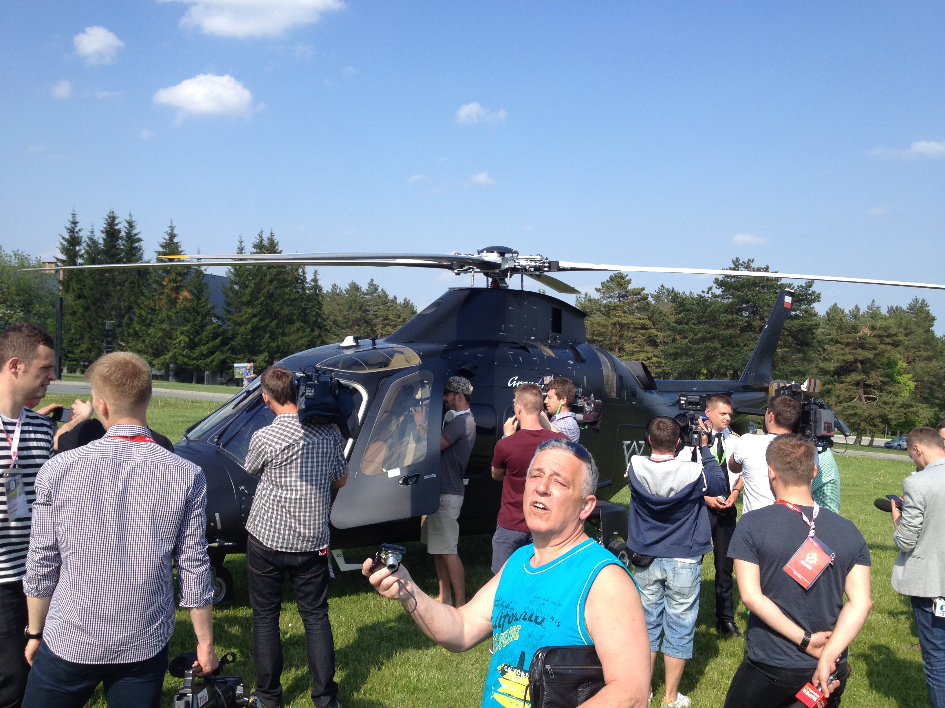 У цьому ролику я нарахував вісім різних локацій. Вісім! Більше того, на цьому відео ніхто нікуди не посилає оператора фразами: "вали звідси", "я нічого не знаю", "не знімай мене", "що ти від мене хочеш?". Кожен гравець спілкується, довго спілкується, грунтовно спілкується і жартує, жартує, жартує. Кожному фану – автограф чи фото на пам'ять. І спробуй лише відмов – в пресі заплюють. Не вірите? Приклад. На четвертий день збору прилетіла головна зірка збірної – Роберт Левандовськи. Можете просто оцінити рівень ажіотажу з цієї світлини. Увага, в кадрі лише половина тих, хто зібрався зустрічати приліт гелікоптера з нападником Баварії на борту.