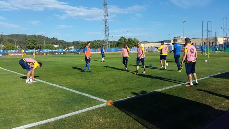 Игроки сборной Украины проводят открытую тренировку на стадионе "Каркассон" после матча с Германией.