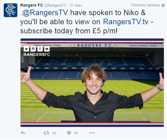 Полузащитник "Нью-Йорк Космос" Нико Кранчар перешёл в "Рейнджерс", информирует пресс-служба шотландского клуба.