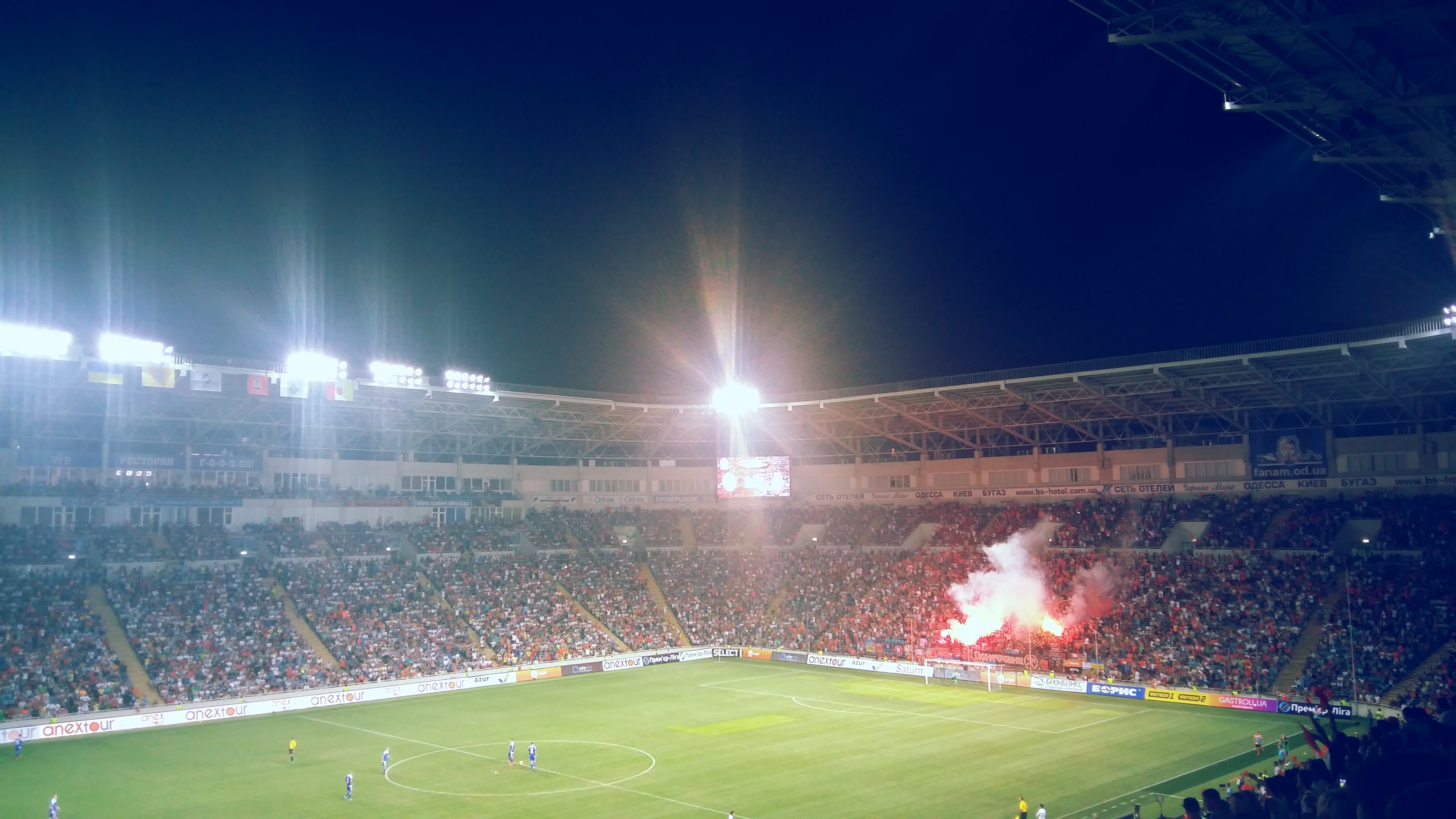 В матче за Суперкубок Украины "Шахтер" - "Динамо" болельщики горняков зажгли на трибуне файеры после забитого мяча Фреда на 58-й минуте встречи.