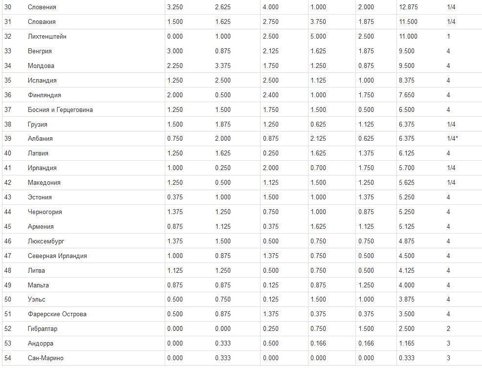 Таблица коэффициентов УЕФА. Плюс для Украины