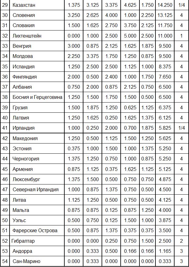 Таблица коэффициентов УЕФА. Новый этап Украины