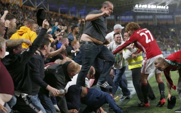 Полузащитник манкунианцев Маруан Феллаини увидел болельщицу, прижатую к щиту и бросился ей на помощь, сообщает telegraph.co.uk