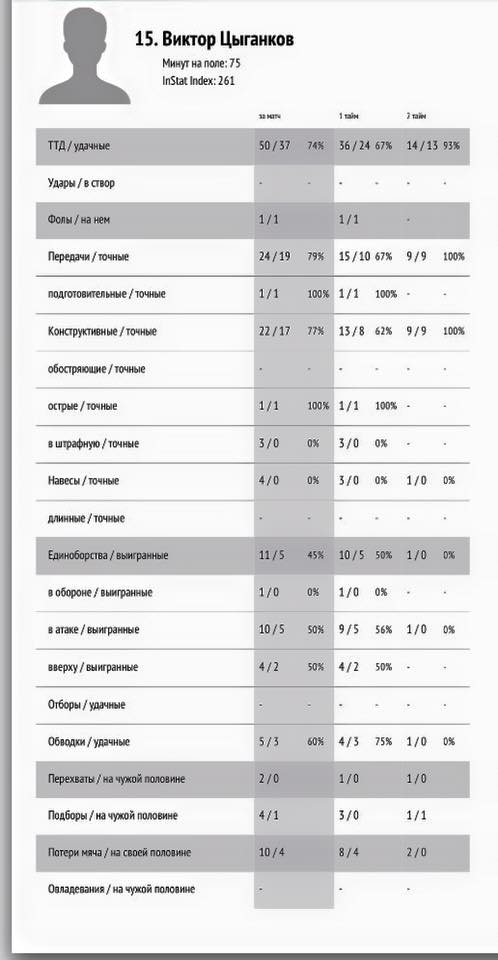 Обозреватель газеты "Команда" Евгений Гресь в своем фейсбуке привел статистические данные игры Виктора Цыганкова в матче "Динамо" - "Наполи".