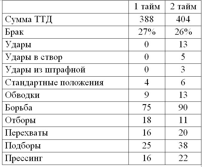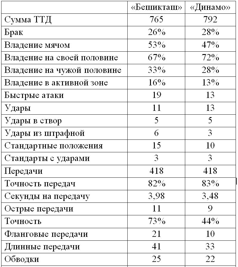 ​Сравнительные показатели ТТД в матче "Бешикташ" - "Динамо"