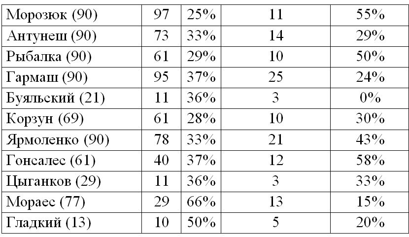 Хачериди -красавец.Антунеш-для защитника иметь такой процент выигранных единоборств и брака-печаль.Мораеш-вселенская печаль.Опорники-слабовато,может в этом и проблема.