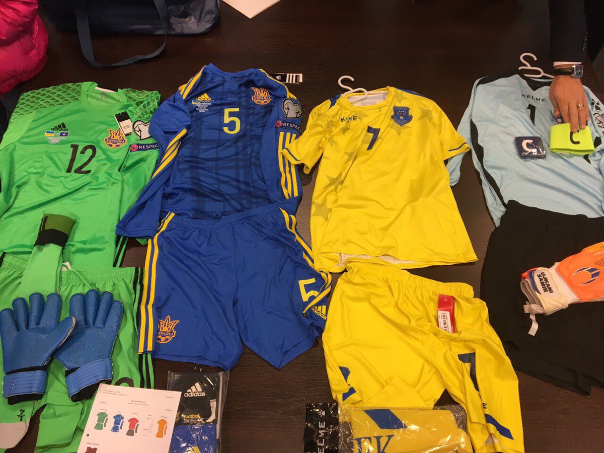 Федерация футбола Украины опубликовала фото с футболками, в которых сегодня в Кракове в рамках 3-го тура отбора ЧМ-2018 сыграют национальные сборные Украины и Косово.