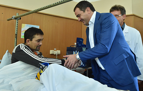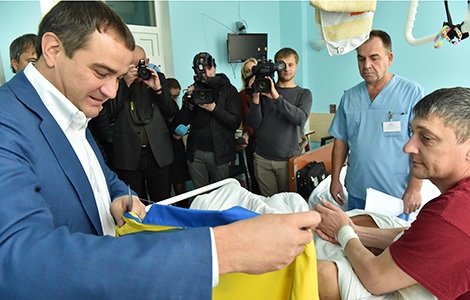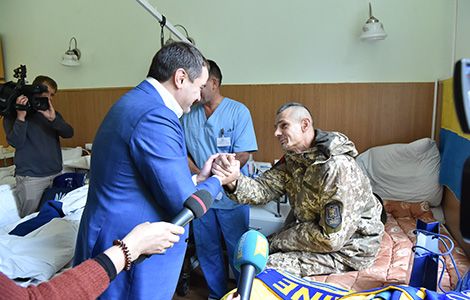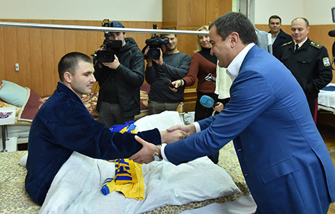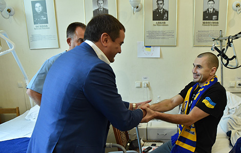 Під час візиту до госпіталю президент ФФУ та перший віце-президент ФФУ Вадим Костюченко відвідали палати бійців АТО, привітали їх та передали їм подарунки від Федерації футболу України: футболки із шарфами національної збірної та продуктові пайки. Андрій Павелко побажав військовослужбовцям найшвидшого одужання та запросив їх відвідати матчі збірної України.