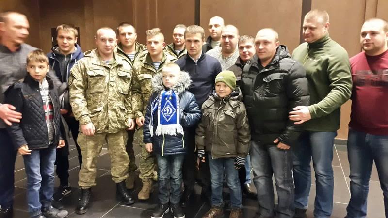 Тренер "Динамо" Сергей Ребров и бойцы 95-й аэромобильной бригады сделали общее фото после матча с "Карпатами".