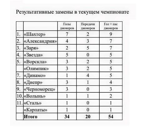 Кстати, всего в текущем чемпионате Украины тренеры произвели уже 34 замены, которые привели к забитым мячам - в среднем 0,35 за игру. В минувшем первенстве было 55 голевых рокировок - 0,32 за матч. Лидировал, к слову, тоже Шахтер - Мирча Луческу тогда сделал 13 голевых замен, но подробнее на эту тему - скоро в газете Команда".