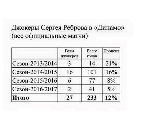 Всего джокеры Реброва забили 27 голов, при этом почти половина из них в активе Лукаша Теодорчика (7) и Олега Гусева (6). В этом сезоне замены Динамо принесли всего два мяча: в поединке со Сталью в чемпионате отличился Денис Гармаш, а во встрече с Бешикташем в Лиге чемпионов - Виктор Цыганков. Обратите внимание, что ни одного гола не смогли забить вышедшие на поле по ходу игры нападающие. Ни одного! А выходов этих было 17 в 23-х поединках...