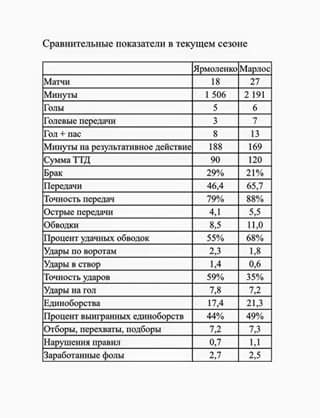 Обозреватель газеты "Команда" Евгений Гресь в своем Facebook сравнил статистические показатели выступлений Марлоса и Андрея Ярмоленко в нынешнем сезоне.