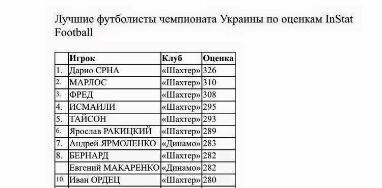 В десятке лучших футболистов - 8 (!) представителей Шахтера, и это лучший ответ на вопрос, почему между первым и вторым местами в таблице 13 очков разницы...