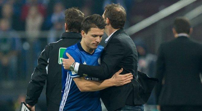Как Коноплянка с главным тренером отрабатывает удары на тренировках "Шальке"