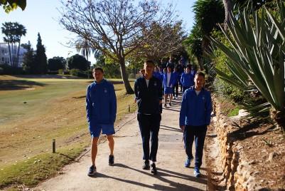 Позавтракав, вся команда совершила прогулку по территории отеля, на которой расположены несколько огромных полей для гольфа, после чего игроков ждало теоретическое занятие.