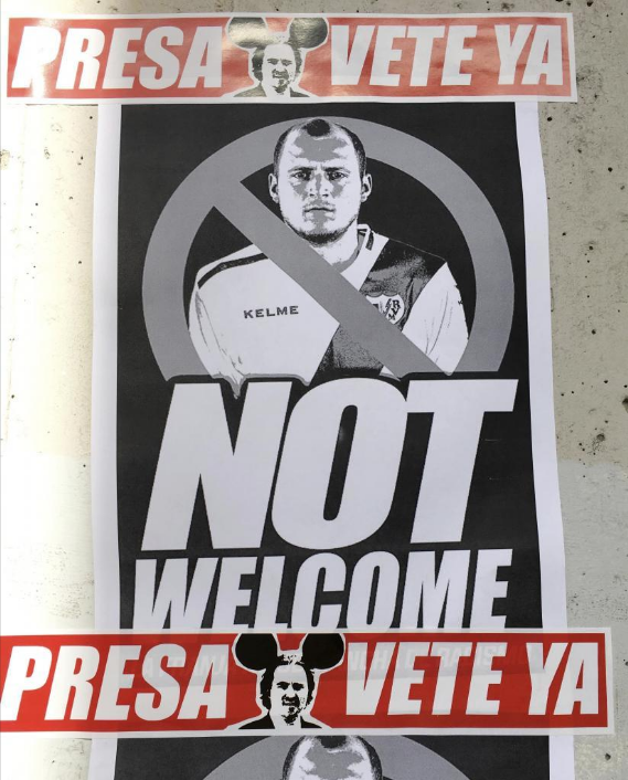 Также на листовках изображен президент «Райо Вальекано» Рауль Мартин Преса с надписью: «Преса, уйди».