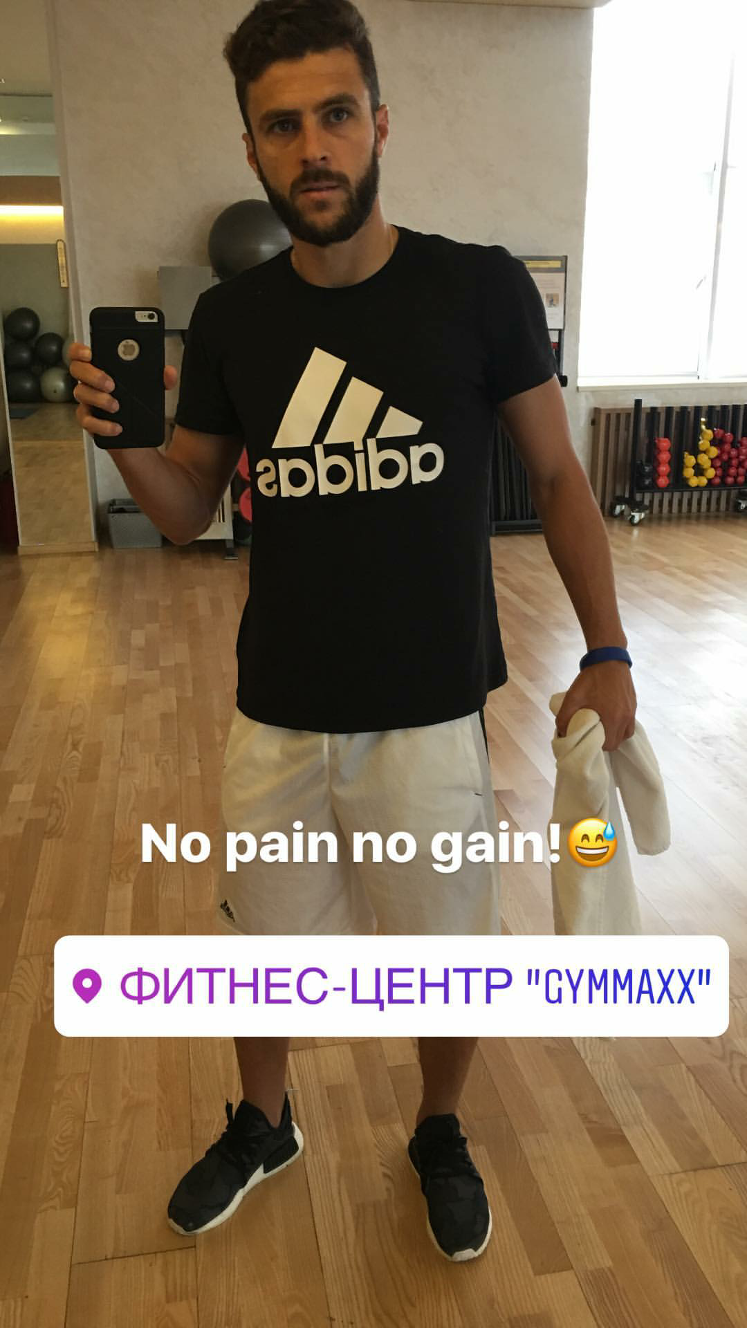 Нападающий "Динамо" Жуниор Мораес, который отбывает пятиматчевую дисквалификацию, поддерживает форму в тренажерном зале.