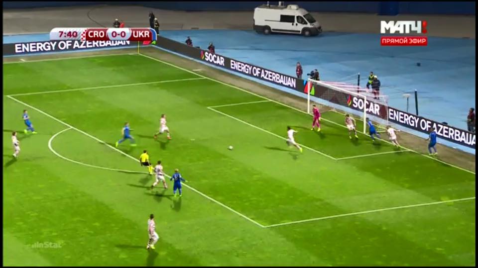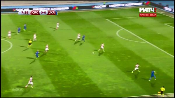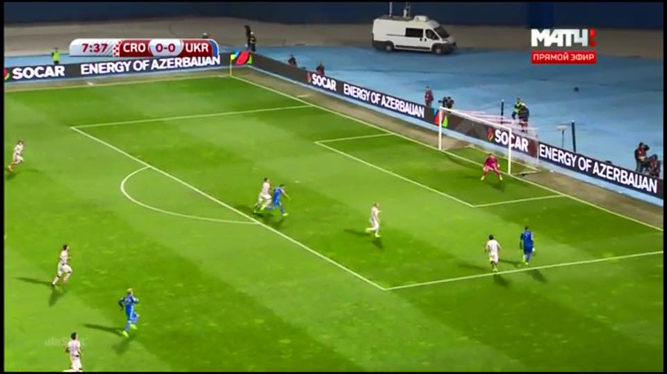 "Продолжаем анализировать матч в Хорватии и отмечаем ещё один интересный момент. На 8-й минуте Богдан Бутко и Андрей Ярмоленко великолепно вскрыли оборону соперника. Динамовец после ложного движения хорошо открылся, а защитник Шахтер дал передачу за спину. Обратите внимание, что в момент паса Бутко Евгений Коноплянка (дальний на фото) находился ближе к воротам соперника, чем Руслан Ротань. Посмотрите, где был полузащитник Шальке во время передачи Ярмоленко. И вспомните, что на отскок первым успел... Ротань, а Коноплянка в этой атаке так и не вбежал в штрафную площадь.