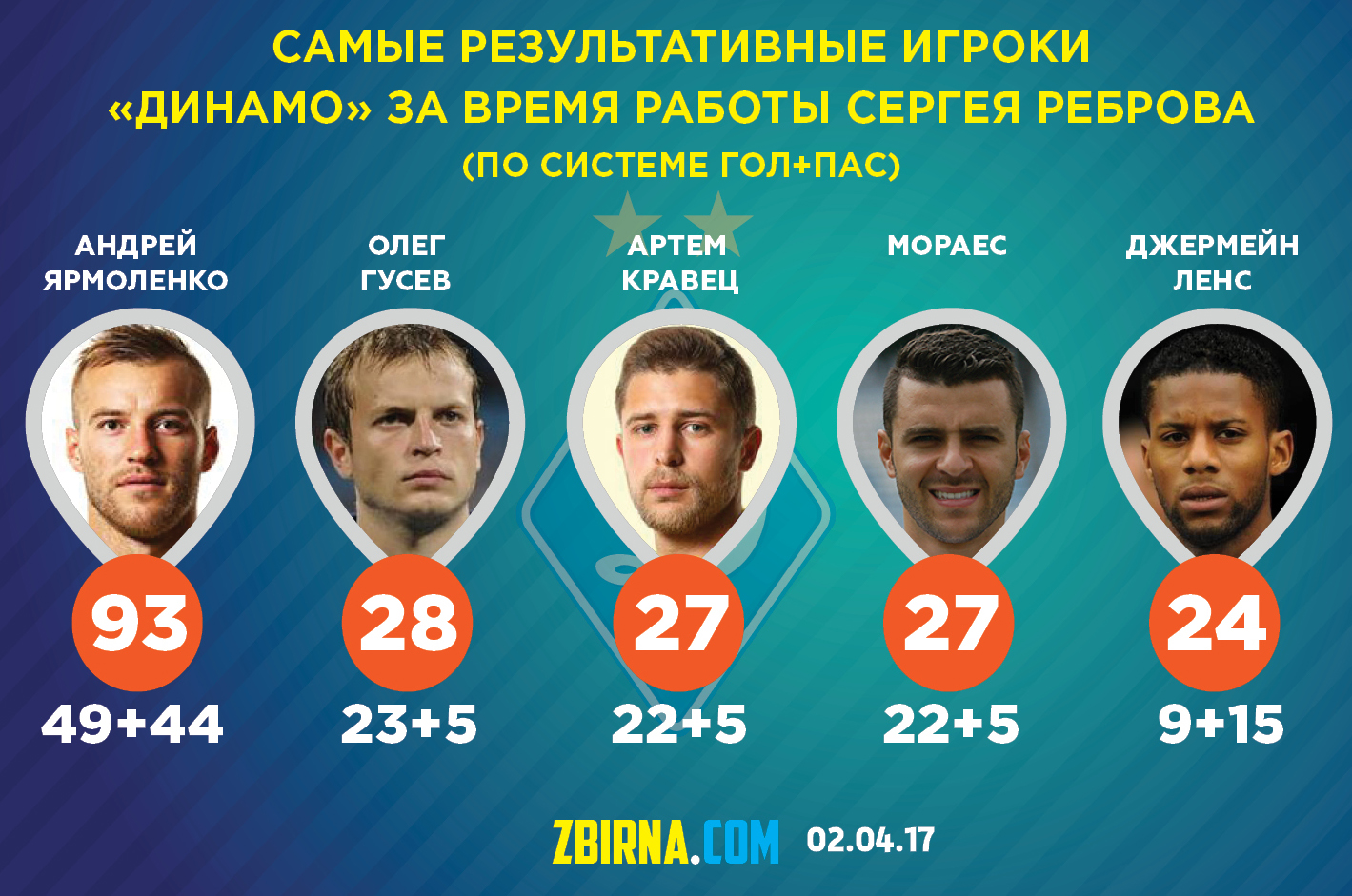 В 107-ми матчах под руководством нынешнего наставника капитан Динамо Андрей Ярмоленко забил 49 мячей и отдал 44 результативные передачи, сообщает