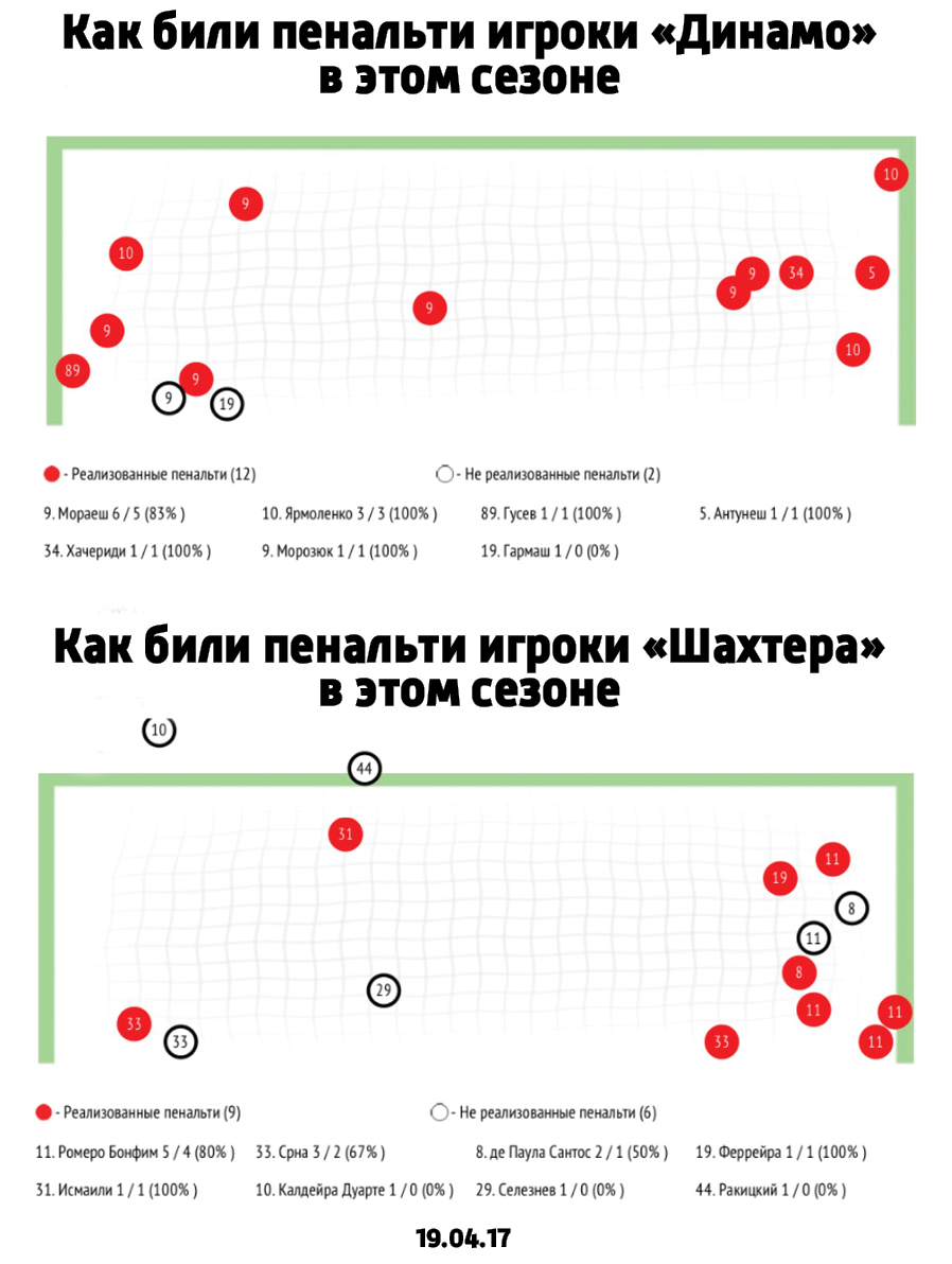 Так выглядят схемы 11-метровых ударов в текущем сезоне с учетом послематчевых серий, пишет zbirna.com.