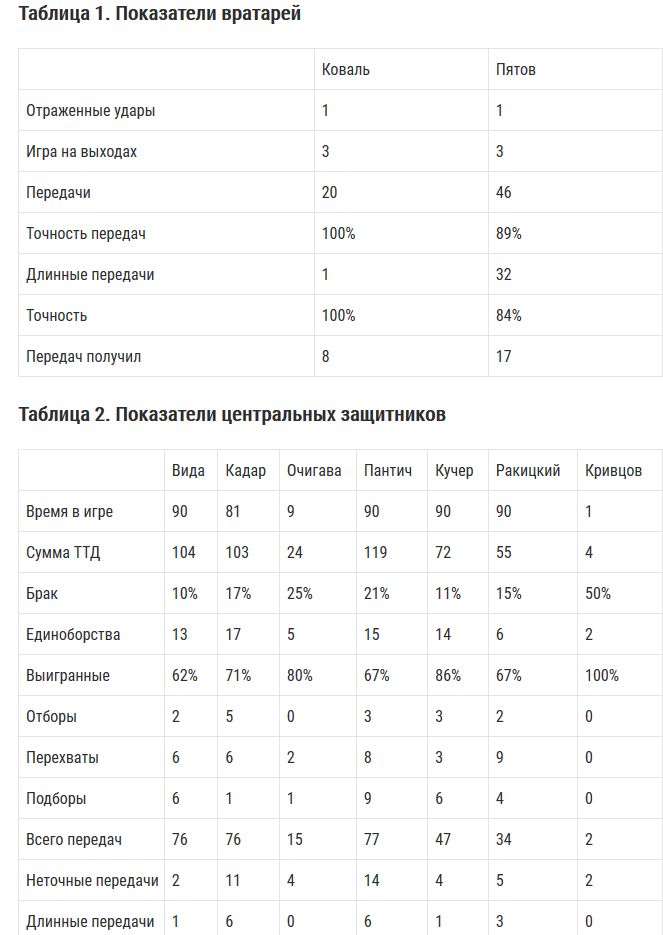 "Динамо" - "Шахтер". Индивидуальные ТТД игроков
