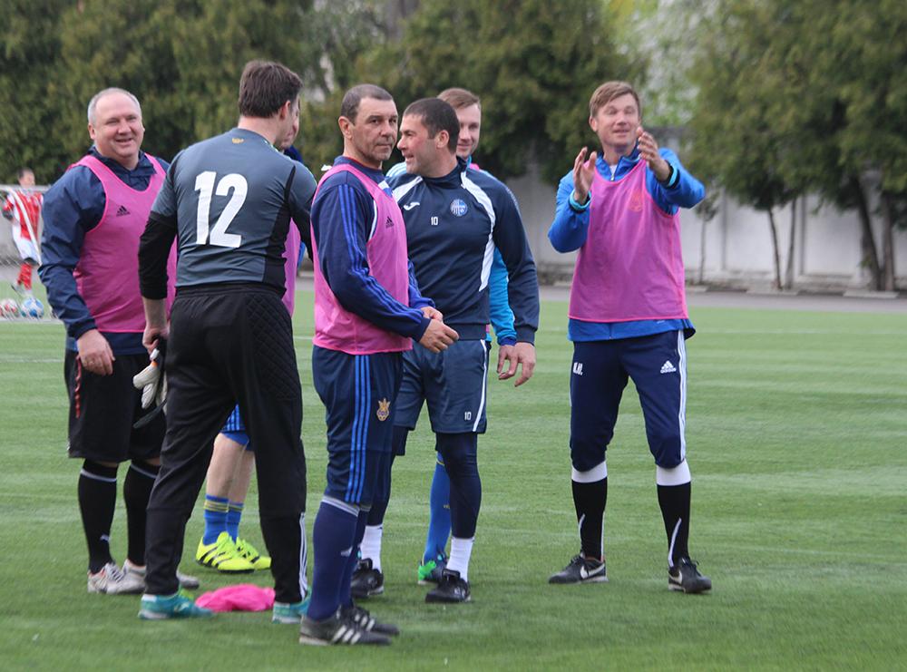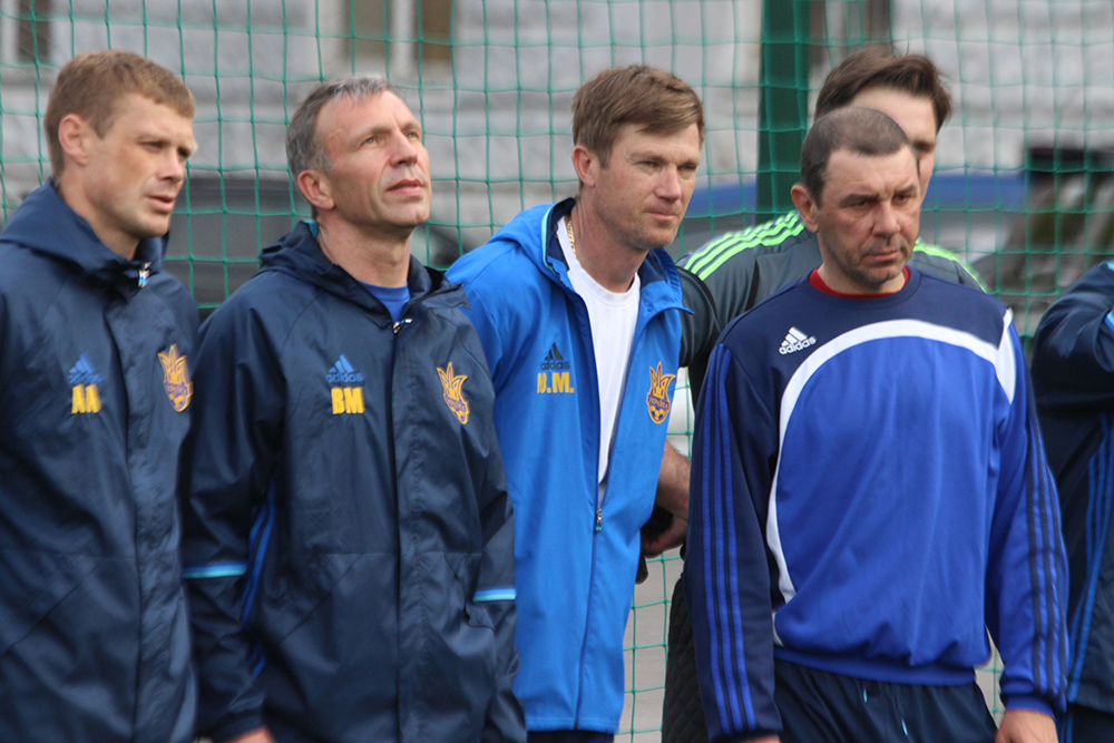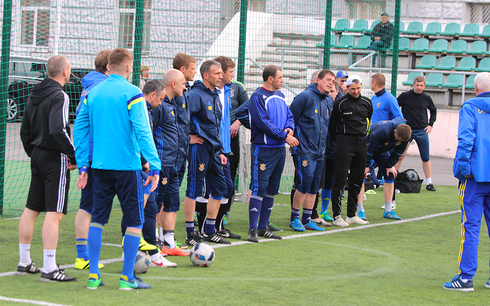 На тренувальному занятті 26-го квітня було як ніколи людно. У збірній знайшлося місце двом голкіперам - Віталію Реві та Святослава Сироту, захисникам Володимиру Єзерському, Віталію Самойлову, Андрію Оксімцу, В'ячеславу Свідерському, а атаку підтримували видатні в недавньому минулому футболісти, такі як Юрій Максимов, Едуард Цихмейструк, Сергій Нагорняк, Артем Яшкін та інші .