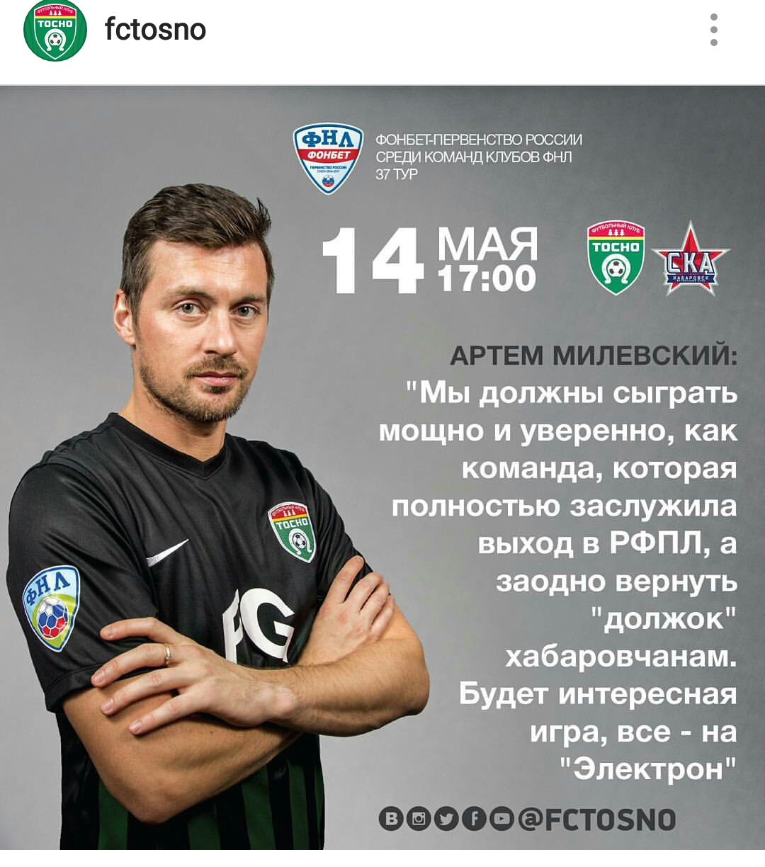 Артем Милевский обратился к болельщикам "Тосно"