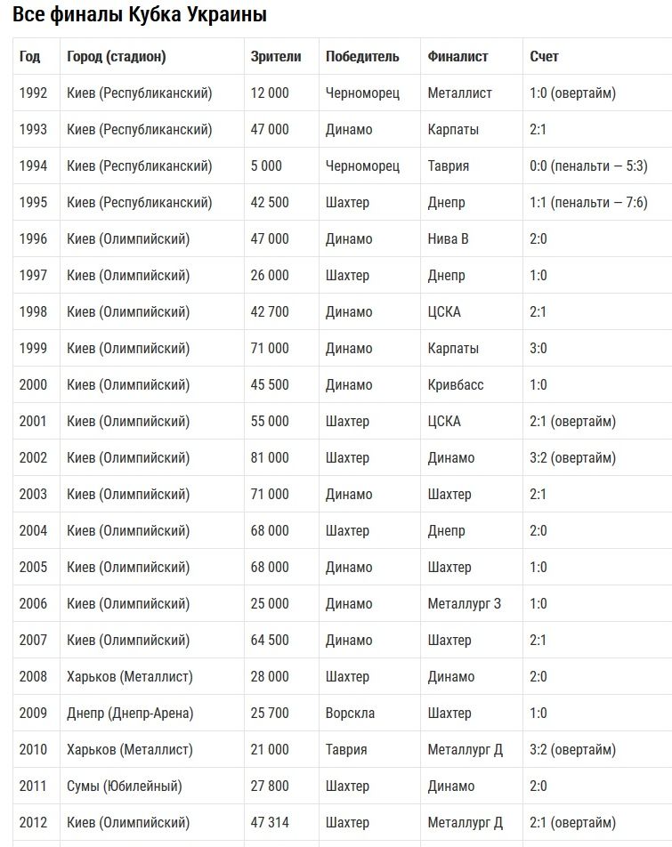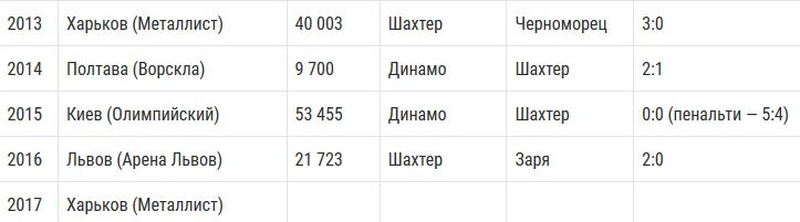 За эти 10 лет финал КУ дважды проводился и в Киеве. По разу — в Днепре, Сумах, Полтаве и Львове. А Харьков его принимает четвертый раз.