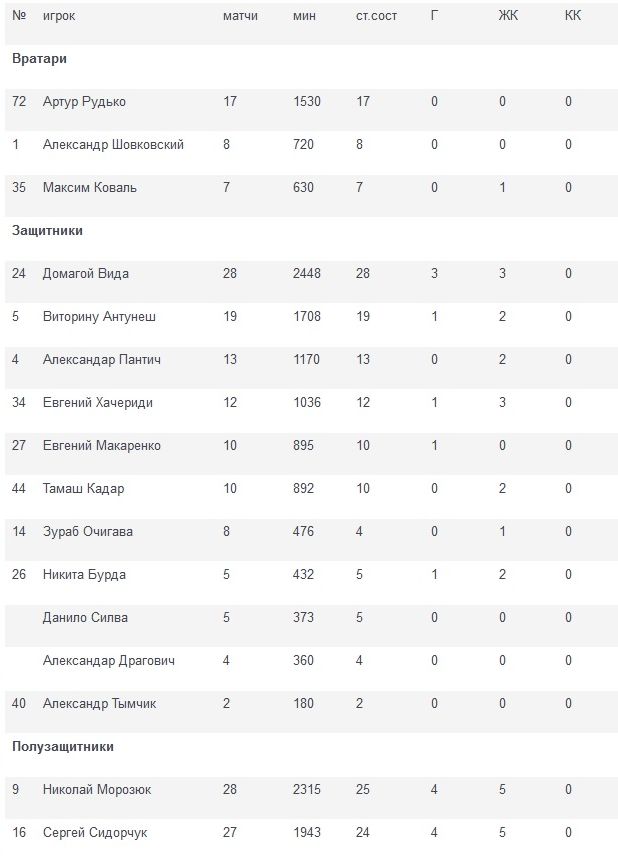 Ваня Иванов, ТАК У ГОЛКІПЕРІВ стоять цифРИ ПРОПУЩЕНИХ ГОЛІВ. Але сумарно там 32 голи, а Динамо пропустило 33. Кому ще один гол не дописали, незрозуміло.
