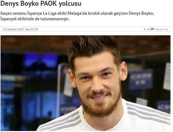 Об интересе греческого ПАОКа к вратарю Денису Бойко, права на которого принадлежат Бешикташу, известно давно. Однако теперь, как утверждает fanatik.com.tr, клуб из Салоник желает не выкупить контракт украинца, а взять его в аренду.