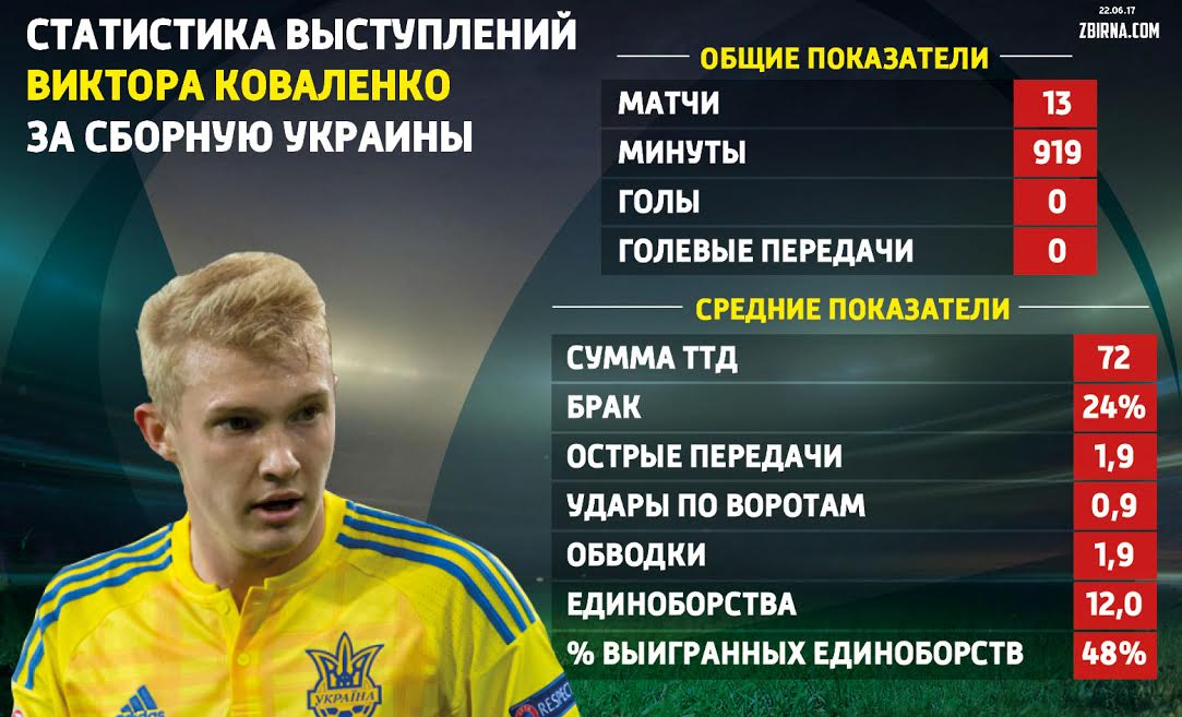 Вообще-то он — самый везучий футболист сборной Украины: как бы ни играл за клуб, в каком бы состоянии ни был — неизменно выходил в основе национальной команды в шести отборочных матчах ЧМ-2018 подряд. Его коэффициент полезного действия не впечатляет, но он все время в стартовом составе. Возможно, болельщикам не понять тех тактических задач, которые успешно решает на поле полузащитник сборной Украины Виктор Коваленко, и уж тем более не оценить объема его беговой работы, но простой зритель ждет от атакующего хавбека результативных действий. А их у него нет. Полный ноль!