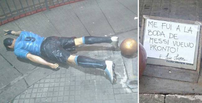 Мужчина в состоянии алкогольного опьянения уронил статую и оставил записку: «Я был на свадьбе Месси, скоро вернусь».