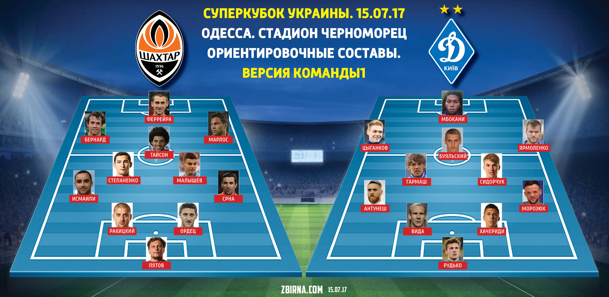 Предлагаем вашему вниманию версию zbirna.com основных составов команд на поединок за Суперкубок Украины