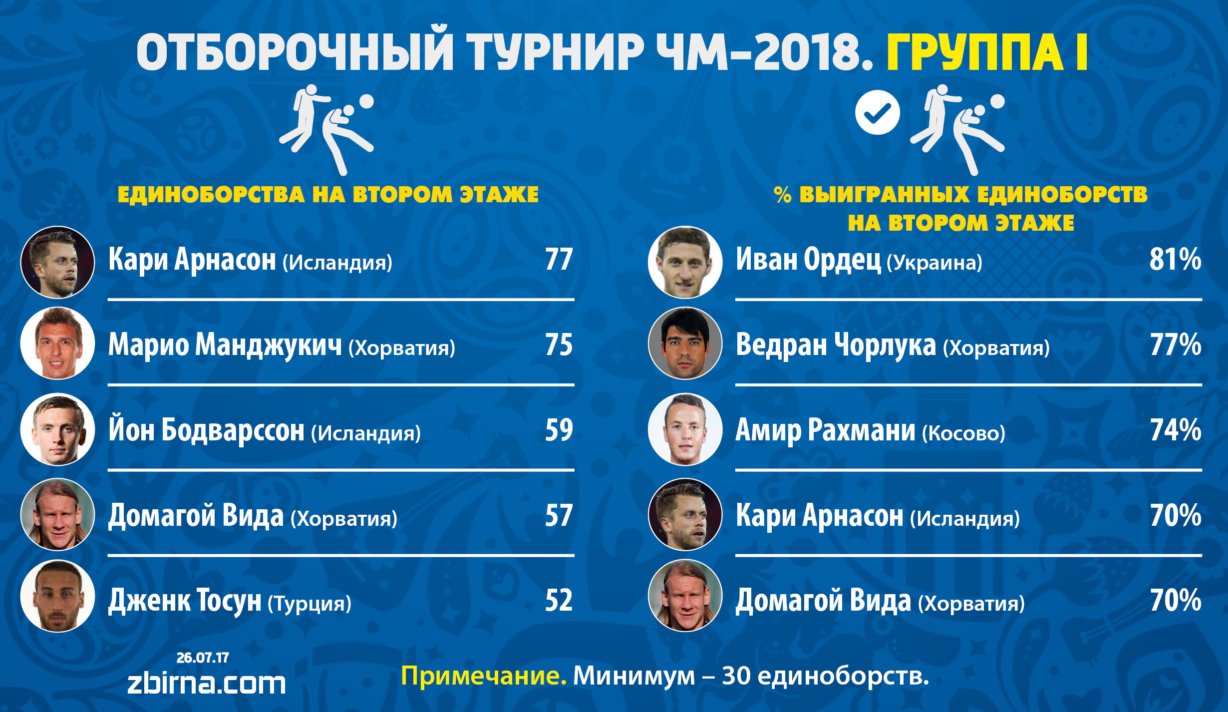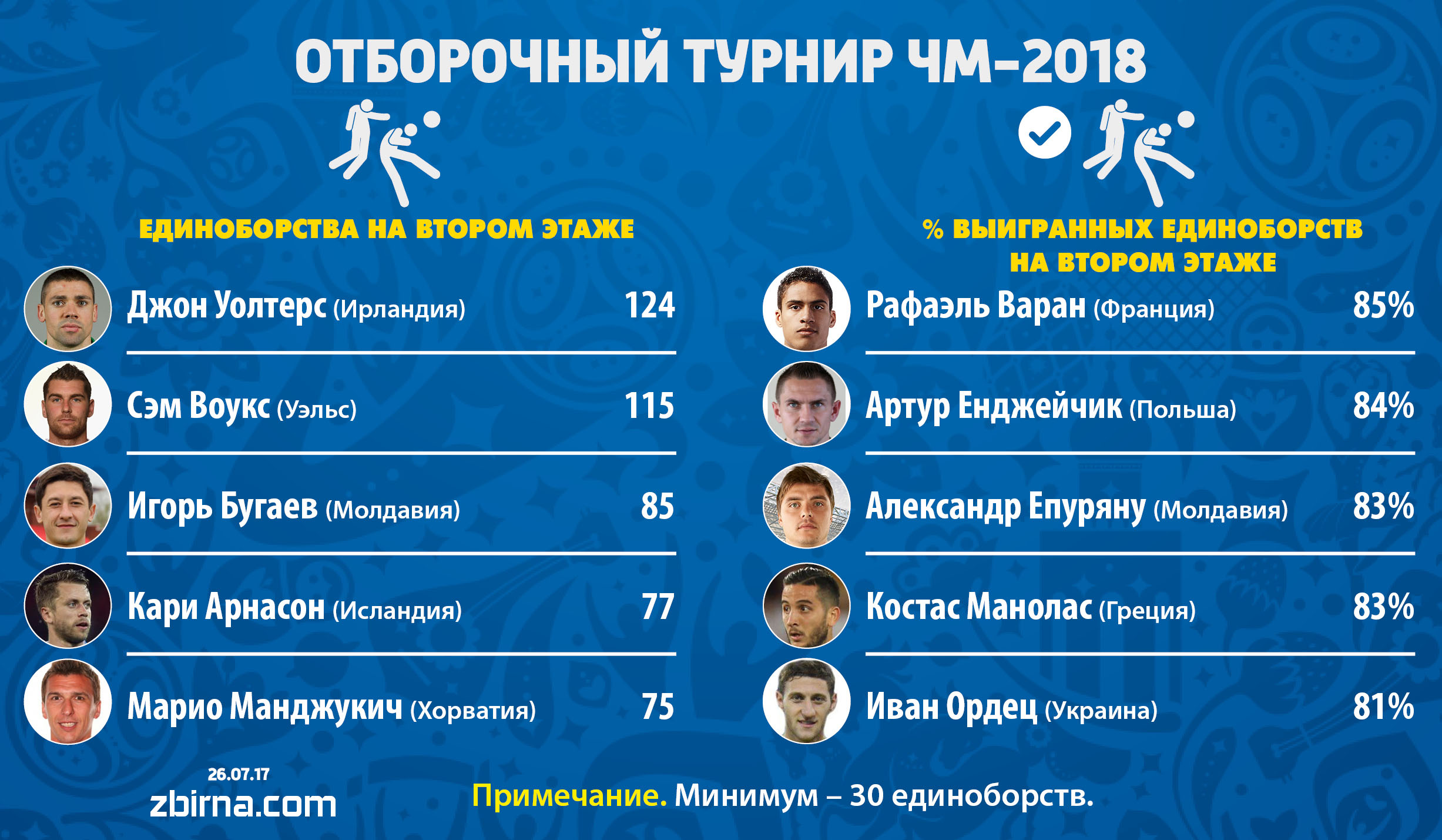 Сборная Украины занимает 34-е место в текущей квалификации по количеству верховых единоборств, в большинстве из которых она выходит победителем — 51%. Это не 62% — как у Польши, не 59% — как у Франции, и даже не 57% — как у Хорватии, но все равно плюс. В среднем за игру украинцы по 51 разу вступают в воздушные дуэли, что почти на 10 единиц меньше, чем было в минувшем отборочном цикле при Михаиле Фоменко. Но тогда ставку делали как раз на атлетизм, поэтому и выигрывали наши парни не 51%, а 53% воздушных дуэлей.