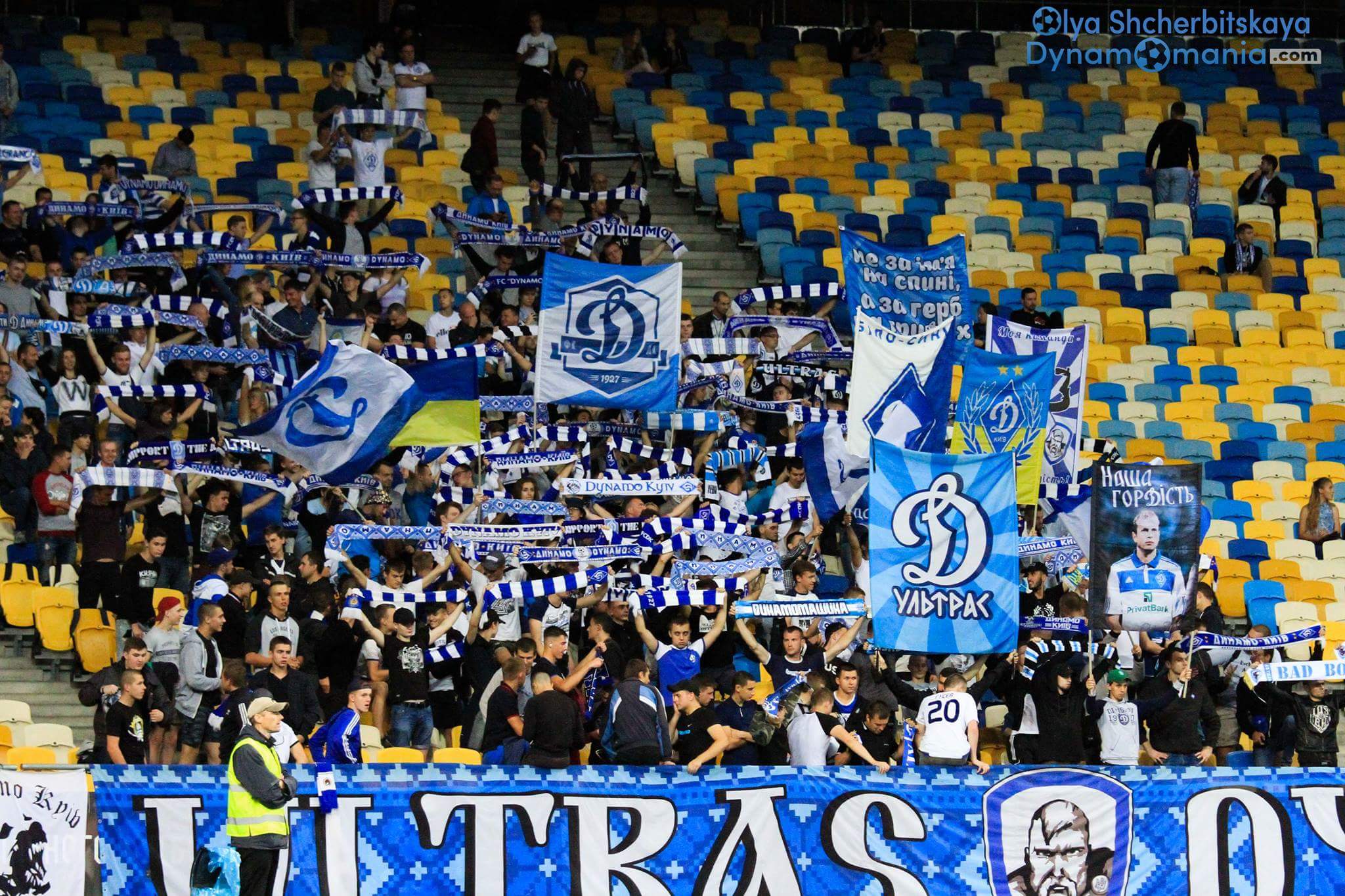 Ультрас "Динамо" встретили выход Олега Гусева на замену в матче с "Карпатами" овациям и посвященным ветерану "бело-синих" баннером.
