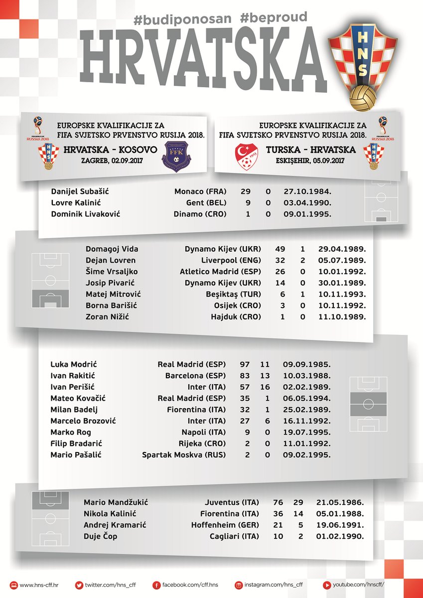 Как сообщает официальная страничка HNS в Твиттере, сразу два динамовца вызваны в сборную Хорватии на ближайшие матчи отбора к ЧМ-2018 против Косово и Турции.