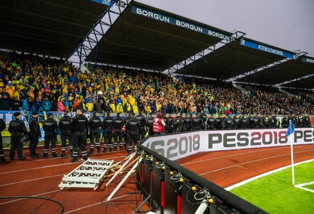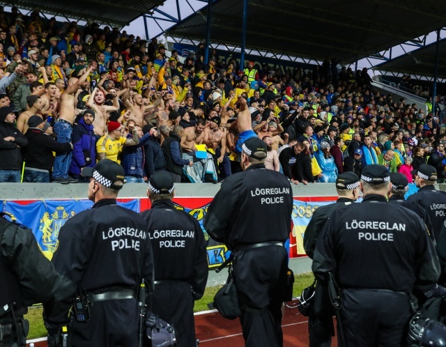 О том, что местным стражам порядка пришлось непросто, сообщает и сайт Fotbolti.net: "На стадионе царила потрясающая атмосфера. На матч приехало много болельщиков из Украины, и их было хорошо слышно. Но в какой-то момент во втором тайме возникла опасность, что гости начнут хулиганить. Поэтому все полицейские, присутствовавшие на "Лаугардалсвёллуре", получили приказ выстроиться перед гостевой трибуной и следить, чтобы все было тихо-мирно". Размещенные фото говорят сами за себя: