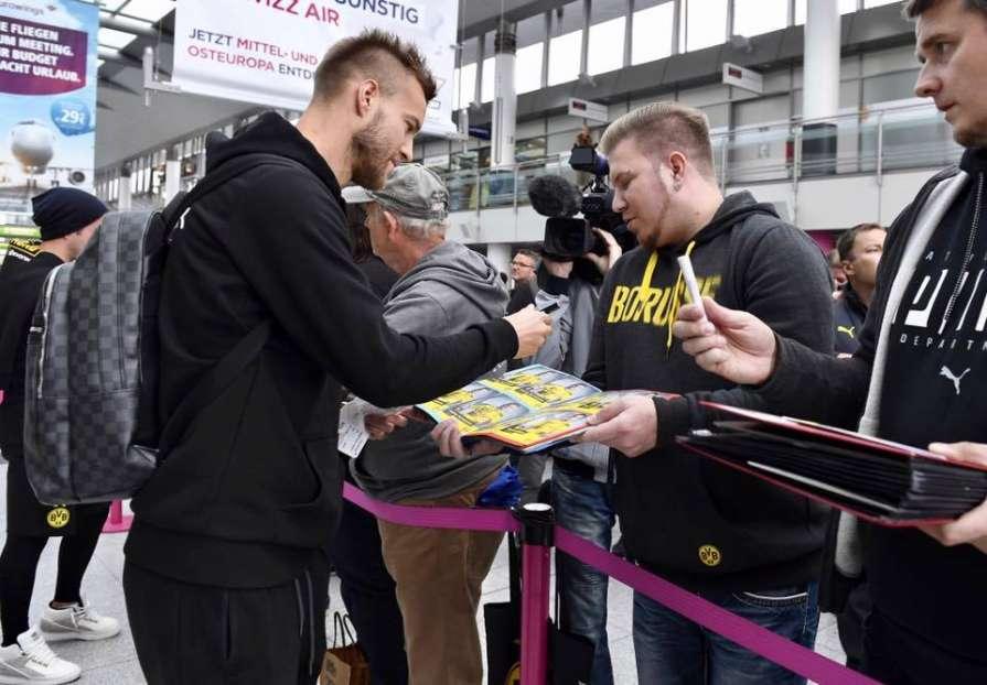 В аэропорту Дортмунда команду провожали болельщики и журналисты, украинец раздал массу автографов, как, впрочем, и его партнеры.