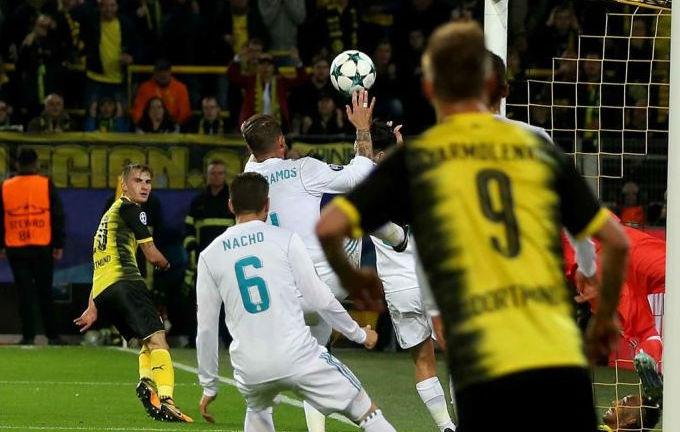На 14-й минуте поединка второго тура Лиги чемпионов, в котором дортмундская Боруссия принимала Реал (1:3), голландская бригада арбитров во главе с Бйорном Куйперсом просмотрела игру рукой защитника гостей Серхио Рамоса, который буквально вынес мяч, летевший в ворота его команды. А счет к тому времени был еще 0:0…