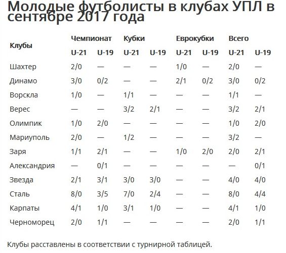 В сентябрьских матчах сезона-2017/2018 лишь один клуб УПЛ не выпускал на поле футболиста, который по возрасту может быть кандидатом в молодежную сборную Украины. Это Александрия, для нее это типичная манера жизнедеятельности. Только в кубковых играх использовал молодежь Верес. Всего одного футболиста категории U-21 задействовала Ворскла. Но какого! Николай Матвиенко является основным игроком уже национальной команды Украины.