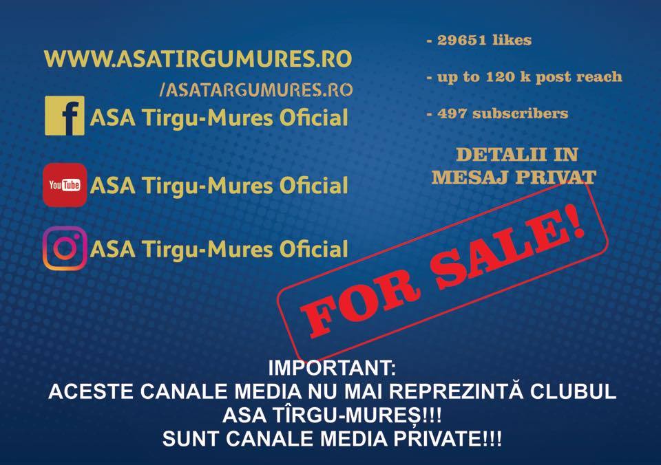 СММщик не растерялся и выставил все клубные аккаунты на распродажу. Отметим, что одна только официальная страничка "Тыргу-Муреш" в Facebook насчитывает 29 057 подписчиков. Ещё 29 618 людей "лайкнули" страничку и активно за ней следят. Сам веб-мастер старается вести себя корректно и прямо не заявляет, за какую цену готов продать клубные аккаунты.