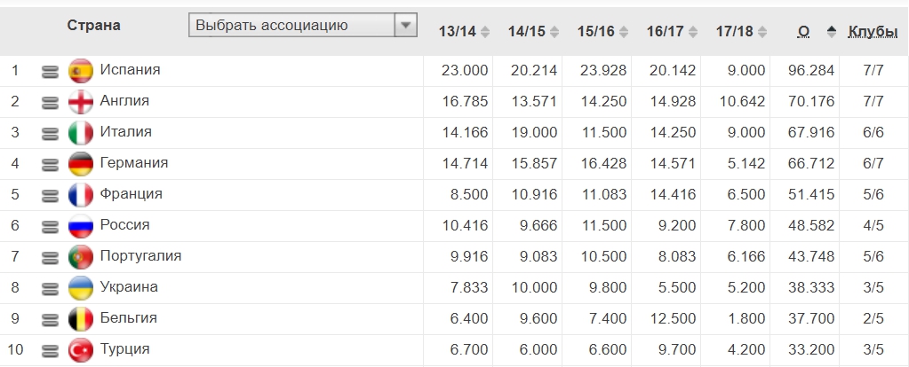Удалось сохранить отрыв от Бельгии, которая с 37,700 балла находится на девятой строчке. Зато приближается Турция, которая благодаря победе «Истанбула» и ничье «Коньяспора» заработала 0,8 очка и теперь имеет в своем активе 33,800 балла.