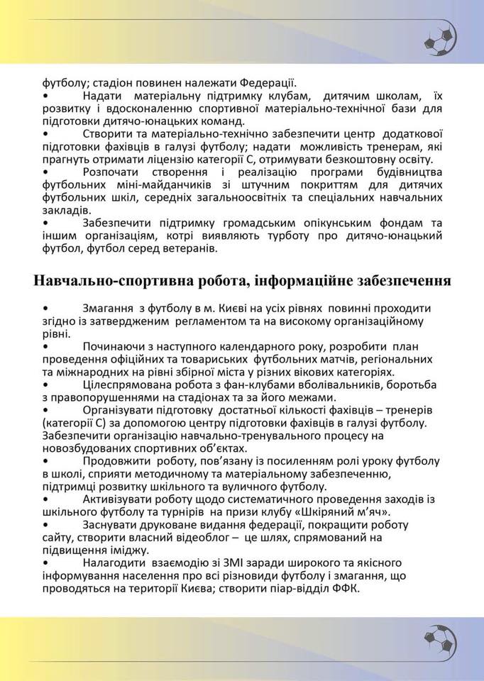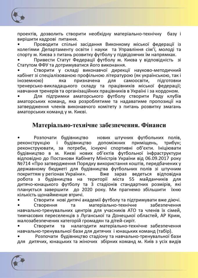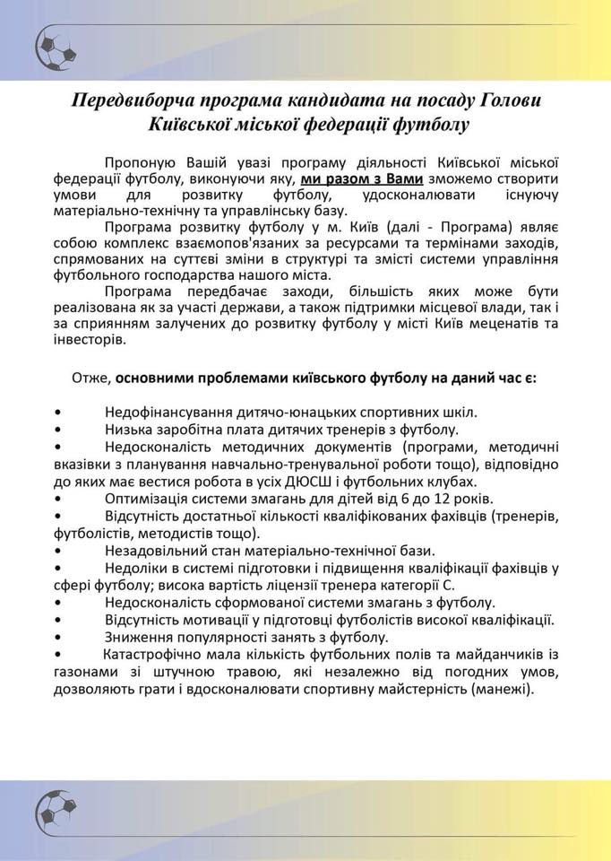 предвыборную программу на пост Главы Федерации футбола города Киева.