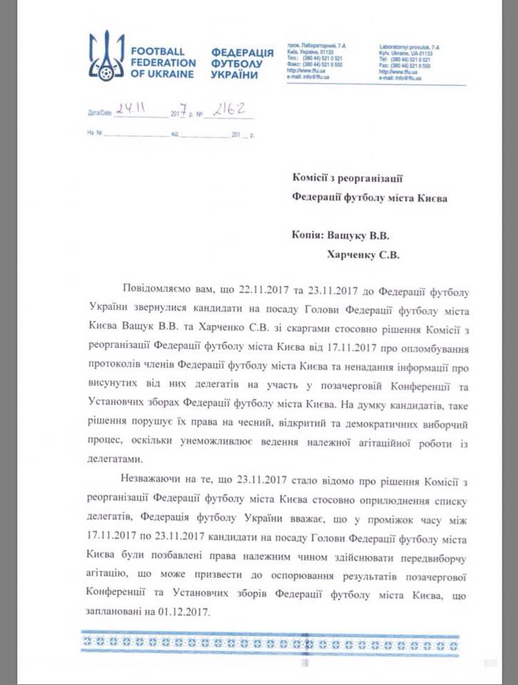 - ФФУ чётко обозначила свою позицию относительно ситуации, сложившейся при выборах Главы Федерации футбола города Киева.