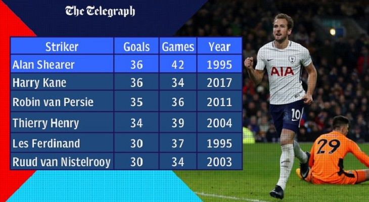 Кейн повторил рекорд Ширера по количеству голов в АПЛ за календарный год