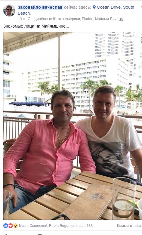 Футбольный менеджер Вячеслав Заховайло разместил в Фейсбук совместное фото с главным тренером "Динамо" Александром Хацкевичем, сделанное на Майами-Бич в американском штате Флорида.