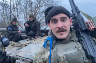 Боєць білоруського батальйону показує знищену техніку росіян.Обережно, нецензурна лексика.